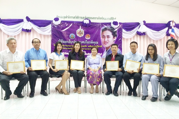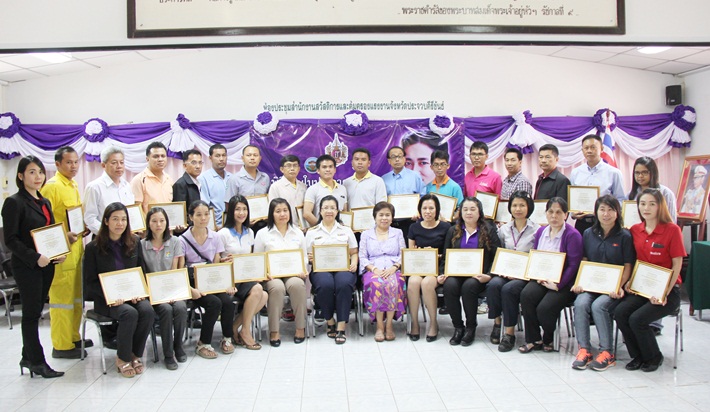 นางสาวธิดารัตน์ ทองพิมพ์ ฝ่ายบริหารระบบ บริษัท ท่าเรือประจวบ จำกัด รับมอบประกาศเกียรติคุณจากนางสาวสุนันท์ ใยเผือก สวัสดิการคุ้มครองแรงงานจังหวัดประจวบคีรีขันธ์ ในฐานะที่บริษัทฯ เข้าร่วมโครงการสถานประกอบการปลอดภัยเฉลิมพระเกียรติฯ ตามที่กรมสวัสดิการและคุ้มครองแรงงานได้ดำเนินการรองรับเพื่อการป้องกันอุบัติเหตุและโรคจากการทำงาน โดยได้ดำเนินการที่จะสร้างความยั่งยืนในการดำเนินการด้านความปลอดภัยฯ ตามกรอบเพื่อการป้องกันอุบัติเหตุและโรคจากการทำงาน โดยมีมุมนิทรรศการพระราชกรณียกิจสมเด็จพระเทพรัตนราชสุดาฯ สยามบรมราชกุมารี และมีกิจกรรมสร้างจิตสำนึกเรื่องความปลอดภัยในการทำงานให้แก่ผู้ประกอบการและลูกจ้าง ณ ห้องประชุม ชั้น 2 สำนักงานสวัสดิการคุ้มครองแรงงาน จังหวัดประจวบคีรีขันธ์
